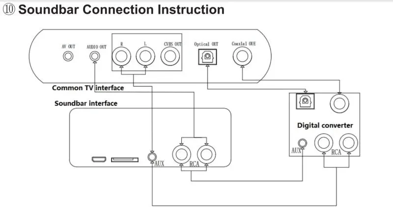 2. If your TVâs audio output port is RCA and The 3.5AUX interface can be directly connected to the line.